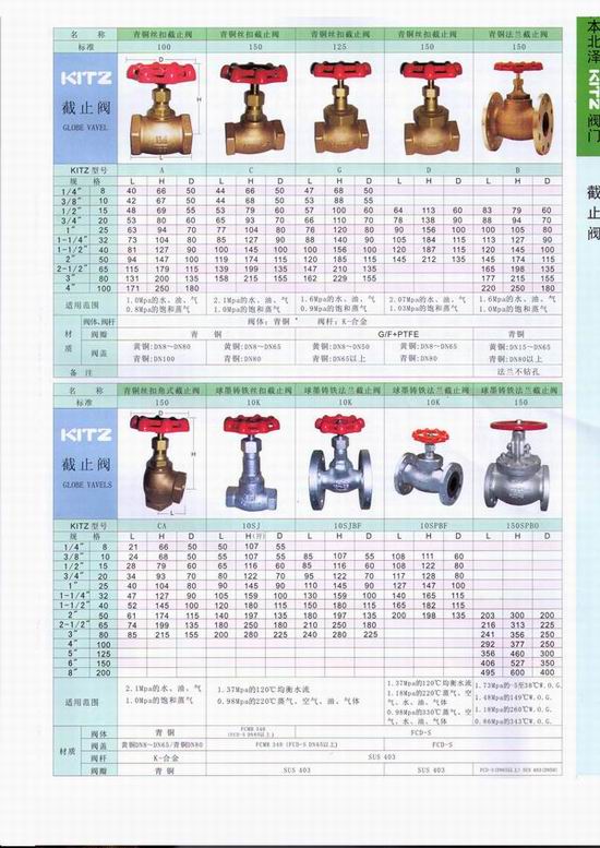 日本北澤KITZ銅截止閥:銅截止閥的啟閉件是塞形的閥瓣,密封面呈平面或錐面,閥瓣沿流體的中心線作直線運動。閥桿的運動形式,(通用名稱:暗桿),也有升降旋轉桿式,(通用名稱:明桿)截止閥只適用于全開和全關,不允許作調節和節流。